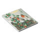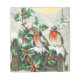 Natais vintages ilustrativos de dois pequenos robins sentados sobre uma cerca com bagas ocas na neve.