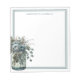 Este bloco de notas de 5,5" x 6" apresenta um gráfico de aquarela bem ilustrado de um vidro de mason, contendo delicadas rosas azuis empoeiradas e folhas de eucalipto. O design único adiciona um toque de elegância e charme a qualquer escritório ou espaço de trabalho. O bloco de notas é perfeito para anotar notas, listas ou compromissos, e ele faz um presente de excelente para qualquer um que ama vintage ou decoração rústica. O bloco de notas também inclui um modelo de nome personalizável no topo, fazer-o como uma escolha ideal para personalizar e adicionar um toque especial ao seu papel de carta. Com papel de alta qualidade e cores vibrantes, este bloco de notas é certamente um favorito para quem procura um na moda e uma forma funcional de se manter organizado.