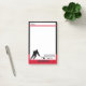 Para amantes de esportes e fãs de hóquei em qualquer lugar É sempre hora de Hockey com um bloco de notas Postado® de 4" X 6". Este novo design é uma versão atualizada do original, "É todo divertido e jogos até que alguém perca um dente... E depois é HOCKEY". Esta design desportiva tem a silhueta de um jogador de hóquei. As cores de fundo, vermelhas e pretas mostradas aqui, podem ser personalizadas para as cores da sua equipe favorita. Você também pode adicionar um toque pessoal adicionando um nome.