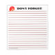 Bloco de notas bonito e prático para aquelas boas ideias, tarefas, compromissos, listas de embalagem ou o que quer que seja para aqueles que preferem o mundo real, lembretes antigos que não dependem de nenhum tipo de tecnologia eletrônica. Você tem a opção de manter, excluir, redimensionar ou substituir nosso bebê elefante; manter ou excluir as linhas vermelhas, e até mesmo mudar a manchete! Escolha entre 2 tamanhos.
