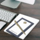 Bloco De Notas Elegant Gold Monogram Blue Leather Look
