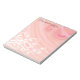 Junte suas notas sobre este bloco de notas personalizado de modelo de 5,5 x 6 polegadas projetado com filigrana branca e flores sobre um computador pastel cremoso alterado gerou fractal de pêssego e espirais cor-de-rosa. Preencha o campo modelo com suas informações, remova todo o texto ou clique em personalizar para selecionar uma fonte, um estilo e um tamanho preferidos.