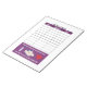 Descubra um bloco de anotações charmoso para ajudá-lo em sua jornada de saúde e malhação. Ele apresenta um fundo branco limpo com sotaques roxos profundos e malhações como uma garrafa de água, calçados ambulantes e um sinal saudável para o coração. Cada linha inclui uma área designada para escrevendo a data, a distância percorrida e a hora do dia. Uma ferramenta excelente para manter-se disponível para ajudá-lo a manter-se no bom caminho.