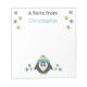 Um bloco de notas para crianças. Apresentando um pinguim e estrelas bonitos. Adicionar um nome. Ideia do presente. Azul e amarelo.
