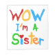Design de texto multicores colorida WOW Eu sou uma camiseta Irmã, capuzes, canecas, botões, cartões, adesivos, guardas, ornamentos, chaveiros e outros presentes de excelente e roupa para irmãs!