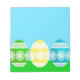 Design bonita e fofa de ovos de Páscoa verde, azul e amarelo, multiculados, decorados, contra fundo azul em pó, que lembra um céu Primavera azul claro.