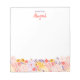 Adicione um toque pessoal às suas notas com este charmoso bloco de notas personalizado. Apresentando um cabeçalho personalizado com seu nome em um script de pincel de na moda, enquadrado por uma delicada borda floral desenhada à mão em matizes de pasta mole. A design limpa e minimalista oferece amplo espaço escrevendo enquanto a estética feminina adiciona um toque de elegância à sua correspondência cotidiana.