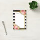 O Posto personalizado elegante nota com um design listrado preto e branco, cor-de-rosa e ouro floral.
