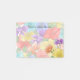 Alegrar notas do dia a dia com estas Notas Post-it Florais Modernas Multicoloridas Personalizadas com Aquarela. Flores multicoloridas vibrantes no canto inferior direito. O fundo apresenta um padrão com as mesmas flores, sob uma sobreposição ajustável para controlar a opacidade. Personalize o texto em qualquer idioma. Alegre, artístico e prático para casa ou escritório. Selecione a opção de ladrilho meio drop para transferências de padrão contínuo.