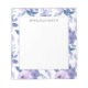 Bloco de notas bonito, giro e feminino com bonito flores e folhas de cor d'água roxas. Personalize com seu nome ou qualquer outro texto que você escolher. Entre em contato conosco para obter ajuda com a personalização ou para solicitar produtos correspondentes ou coordenadores.