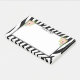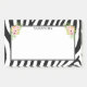 Tiras de zebra pretas modernas e buquê rosa com folhas. Monograma opcional