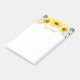 O design personalizado chic apresenta uma borda superior de girassóis amarelados vibrantes e marinhos de girassol azul. Personalize com seu nome ou escolha de personalização em letras manuscritas de pincel.