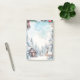 Uma bela ilustração cênica de uma floresta montanhosa de neve e cabines de tronco. Bordada por bagas de Natal, decoração e cones de pinho. Um belo Posto de notas para escrever notas especiais na hora de Natal.