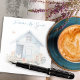 Bloco de notas com imagem de galinheiro ao fundo. Galinheiro azul claro com galinhas e um galo. Personalize o texto azul na parte superior com um nome ou qualquer coisa. Use para notas pessoais ou comerciais.