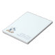 Bloco de notas de quarenta folhas com desenho de galinheiro azul. Adicione texto na parte inferior. A amostra é o nome e endereço em um estilo de fonte impressa divertido. O design está no canto inferior esquerdo, com galinhas, galo, pássaros e flores silvestres por um galinheiro azul claro.