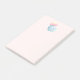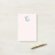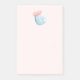 Notas pegajosas com uma imagem fofa de uma garrafa de bebê azul-claro com uma jante rosa.