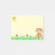 Gatinho tabby laranja fofinho, sol feliz, flores e plantas de grama verde Notas autoadesivas. Um gatinho fofinho para alegrar o seu dia!