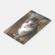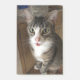 Um pedaço de posto que ele anota apresentando uma foto de um gato.