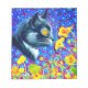 Notepad com a pintura animal de Louis Wain Cat no Mar de Flores (1860-1939). Um gato preto e branco com olhos ouros cheira a flores amarelas. No fundo roxo estão flores azuis. Um presente maravilhoso para amantes de gatos e arte inglesa.