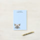 Trabalho de arte gráfico retratando a face de um gato siamês em cores buff, escuro sobre a luz, com olhos azuis claros junto com texto modelo fácil de personalizar decora este bloco de notas poste-it.