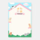 Há gatos bonitos na casa, arbustos verdes, e nuvens brancas no céu azul.