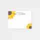 Posto de girassol — nota para um professor com "da mesa de" escrito acima do seu nome, em uma charmosa fonte esboçada. Os girassóis são grandes e amarelos brilhantes, um em cada dois cantos.