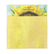 Escreva algumas palavras ensolaradas de ouro, e envie um pouco de luz solar. Aqui está um lindo bloco de notas de girassol de aquarela, se sentindo rico e texturado, brilhante e alegre, — você pode ficar bronzeado por pegar esses raios. Você pode excluir as linhas claras. Editar ou excluir todo o texto. Ou escreva sua própria citação ensolarada ou letra de música: "Você é o meu sol...", "Uma pequena nota de um por cada SON para o SUNoutro", "A Terra ri em flores", "Você acende minha vida"... "Porque você tem o SNality...."
