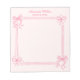 This girly feminine personalized notepad features a decorative pink bows frame on a soft pink background. Customize it with a name and your desired text. This coquette timeless design is an excellent choice for teen girls and women.