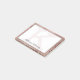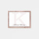 Esta tendência e um único design de cinta de vidros apresenta um grande monograma personalizável em cor-de-rosa rosa-ouro pálido, no centro, em uma popular tipografia serifônica contra um fundo branco para o escrevendo, junto com um nome personalizável em um roteiro popular com um olhar com a mão em cinza escura. A fronteira inclui rosa de ouro escovado e rosa de ouro para vislumbração para adição de brilho e brilho. Você pode personalizar este item alterando o monograma e o nome no modelo do produto. O design deste produto foi especificamente adaptado ao tamanho do bloco de notas de 4" x 3". Você pode encontrar outros tamanhos de bloco de notas na mesma coleção de produtos.