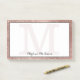 Esta tendência e um único design de cinta de vidros apresenta um grande monograma personalizável em cor-de-rosa rosa-ouro pálido, no centro, em uma popular tipografia serifônica contra um fundo branco para o escrevendo, junto com um nome personalizável em um roteiro popular com um olhar com a mão em cinza escura. A fronteira inclui rosa de ouro escovado e rosa de ouro para vislumbração para adição de brilho e brilho. O design foi adaptado para ajustado dos notebooks de 10" x 6". Você pode encontrar os outros tamanhos de bloco de notas disponíveis na mesma coleção. Você pode personalizar este item alterando o monograma e o nome no modelo do produto.