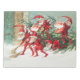 Funny vintage illustration of little white bearded gnomes dressed like Santa, sweeping snow with brooms. Published by L. Prang & Co.