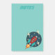 Bloco de notas vertical do post-it da ilustração gráfica do navio do foguete retro. A cor assim como o texto do fundo podem ser personalizados.