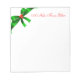 Bloco de notas personalizável branco de 5,5" x 6" com uma imagem de uma fita de sino verde de canto com bagas ocas vermelhas. Veja toda a coleção do Bloco de Notas de Natal na categoria OFFICE na seção HOLIDAYS.