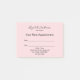 Este lembrete de compromisso cor-de-rosa pálido tem uma linha de script de estilo manuscrito preto para o seu nome na frente. O texto adicional para o seu título está disponível abaixo do script. São duas linhas para escrever a data e a hora do próximo compromisso do cliente. A parte inferior tem linhas de texto de exibição para o nome do salão, endereço e número de telefone, Todo texto pode ser editado ou excluído.