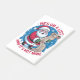 A fun, festive, and colorful cartoon illustration of Santa Claus happily holding a long, rolled-up "Naughty/Nice List." The background is a vibrant blue with white snowflakes and evergreen trees, enclosed by a circular border. Bold, red and white text prominently features the phrase: "HE'S ON A LIST AND IT'S NOT MINE." This design has a distinct, appealing retro or vintage feel, perfect for holiday apparel or greeting cards.