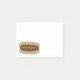 Nota postada apresenta um marcador original ilustrativo de um cachorro quente delicioso com mostarda e sabor, em um pão.