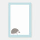 A ilustração original do desenho de Destei de um lindo animal africano Pygmy Hedgehog. O ouriço está de pé e é fotografado do lado. O ouriço tem dedos cor-de-rosa e um sorriso no rosto. O meio é branco, enquanto as bordas são azuis-claros. Design bonito para quem gosta de ouriços.