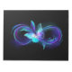 Símbolo infinito com borboleta mágica, roxa e brilhante com asas transparentes, sobre fundo preto. Borboleta brilhante.