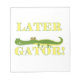 Um jacaré verde bonito com texto amarelo que lê um jacaré mais atrasado! Correntes mais atrasadas dos t-shirt, das bolsas, das canecas, do ímã, as chaves do jacaré, lembranças, cartões, etiquetas, botões, travesseiros, e muito mais.