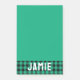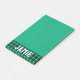 Bloco de notas adesivo verde profundo personalizado com o seu nome em letras grandes em branco, em negrito, na parte inferior do bloco de notas, contra um fundo da verificação de búfalos verdes jade. Bloco de notas personalizado com um detalhe de cheque de búfalo verde, seu nome em letras grandes e negrito, e um tom forte de verde legal que fará suas anotações e lembretes duro de falhar!