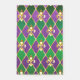 joias, fundo em Mardi Gras de losango roxo e verde, lírios de ouro decorados.