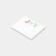 Estas almofadas de anotações festivas te deixarão de bom humor. Esta design apresenta a palavra "JOY" na tipografia moderna de vermelho e verde com um floco de neve de aqua pastel em vez da letra O. Um impressão de damasco suave azul pastel em branco adiciona um toque elegante ao fundo. Faz uma ideia de presente de excelente ou um gafanhoto de estoque. Tamanho 4" x 3". Desenhada pela artista Susan Coffey.