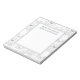 Bloco de notas personalizado com na moda e lápis/linha elegantes desenhados em um fundo branco e texto, "Da escrivaninha de... Seu nome." Entre em contato conosco para obter ajuda sobre a personalização ou produtos correspondentes.