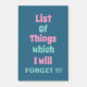 Engraçado Lembrete para Pessoas Esquecidas Não Esqueça as notas Postadas com uma citação engraçada - Lista de coisas que eu esquecerei!!! Ei, amigo esquecido! Hora de um lembrete pegajoso para nunca esquecer sua coisa secreta contra o esquecimento: as notas de posto! São como pequenos lembretes coloridos que ficam por aí e se certificam de que não perde uma batida. Então, da próxima vez que você precisar se lembrar daquela tarefa importante ou deixar uma nota hilária para si mesmo, não se esqueça de pegar aquelas notas de posto confiáveis! Mantenha-o, coloque-o muito bem, e conquiste o esquecimento como um chefe!