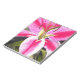 com design original da pintura aquosa do artista Sacha Grossel, de flor lírio rosa quente, em estilo macro próximo. Esta pop botânica inspirou um design floral brilhante e colorido com pétalas cor-de-rosa intensas e fundo verde.