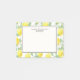 Notas pegajosas desenhadas com limões amarelos e folhas verdes, num padrão repetitivo. A camada acima é um retângulo colorido creme com uma borda preta, personalizada com seu nome e título.