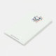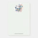 Notas pegajosas com um trio de borboletas fluindo entre algumas flores bonito. Esquema de cor rosa azul e verde.