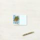 Notas pegajosas com uma bela e tranquila fotografia de duas palmeiras sob um céu azul brilhante. Em pé numa praia tropical isolada com água turquesa calma.