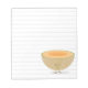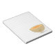 Um bloco de notas com um caráter cantaloupe sorridente, sobre papel branco com linhas de cinza.