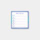 Esta mãe para fazer o bloco de notas adesivo pode ser personalizada com um nome diferente. É um pequeno bloco de notas adesivo 3x3 quadrado com tons de texto azul e roxo sobre fundo branco. Há uma pseudo-fina borda roxa e azul. Você pode alterar o texto que diz "Lista de Tarefas" para outro tipo de lista, se desejar. Há caixas de seleção ao lado de cada uma das 5 linhas que podem ser marcadas à medida que cada tarefa é concluída. Mantenha simples com apenas 5 coisas para fazer!